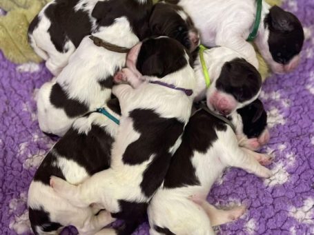 igentlich war für unseren I-Wurf eine andere Verpaarung geplant. Aber meistens kommt es anders, als man denkt. Unsere Frisbee (Felicitous iHope) haben wir mit 3 Jahren bei einer Geburt verloren. Immer wieder habe ich mir Würfe überlegt, die uns ein bisschen Frisbee zurückbringen könnten. Aber immer wieder stand etwas dazwischen oder wir haben uns für eine andere Deckung entschieden. Bei unserer letzten Deckung mit Nala war es leider so, dass Finn zu diesem Zeitpunkt nicht auf der Höhe war und wir uns anders entscheiden mussten. Der Gedanke, Frisbee etwas zurückzubekommen, rückte in weite Ferne. Als uns dann Petra anrief und meinte, Finn wäre wieder fit, freuten wir uns riesig. Prompt wurde Fee viel früher läufig als gedacht, und es ging dann alles ganz schnell. Jetzt haben wir sieben Zwerge in unserer Wurfkiste und sind super happy, wieder ein bisschen Frisbee bei uns zu haben. Die Zwerge entwickeln sich prächtig, und wir sind gespannt, was die Zukunft uns bringt.